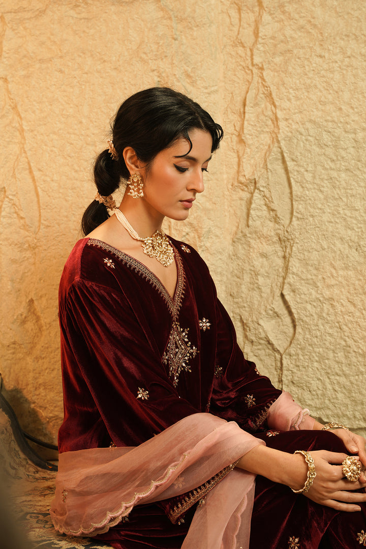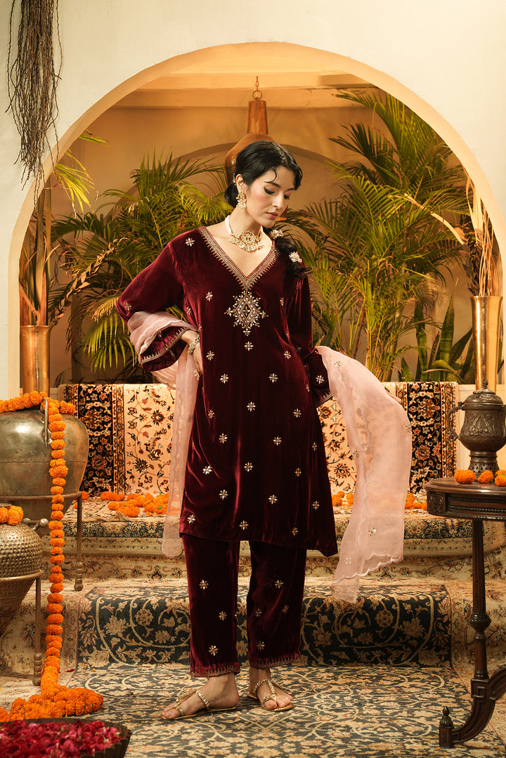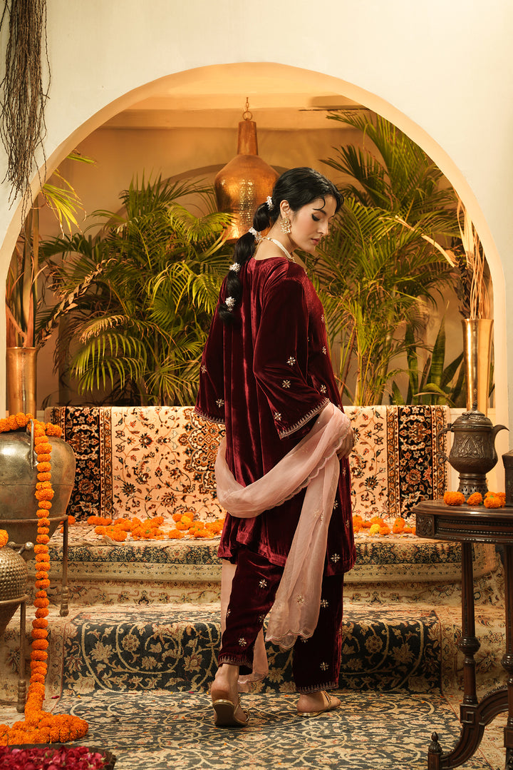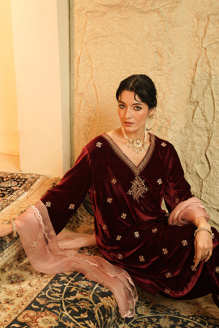 Maroon Noor Velvet Kurta Set